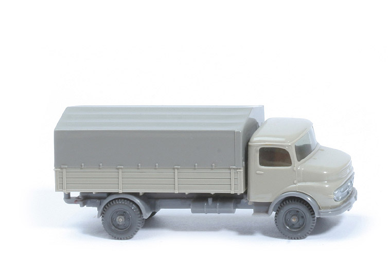 Version Kabine | ohne Dachlüfter, Stoßstange separat | Farbe Kabine | olivgrau | Verglasung | getönt | Grill | silbern eingesetzt | Verglasung | getönt | Bemalung | ohne | Inneneinrichtung | ohne | Kombination Chassis/Pritsche | Version 4 | Chassis Art | Typ 3 (wie folgt) | Kotflügel hinten | stark | Pritschenabstützung | stegartig | Reserverad | ohne, hierfür Steg | Aufnahme für Inneneinrichtung | mit | Bodenprägungen | Wiking, 43k, Made in Germany | Chassisfarbe | basaltgrau | Pritsche Art | Typ 2 (wie folgt) | Pritschenseiten | gerade, feine Struktur | Pritschenboden | 6 schmale Quertraversen | Pritsche Farbe | olivgrau | Pritscheneinlage | silbern | Plane | betongrau | Räder | 11mm, 6 Loch, Grobprofil |