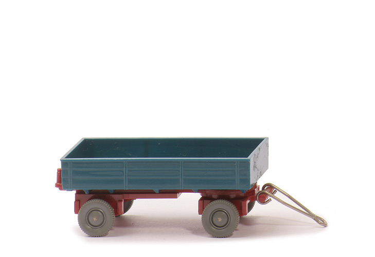 | Pritsche | Pritsche Farbe | azurblau | Pritschenseiten | mit Struktur | Pritscheneinlage | ohne | Kennzeichen hinten | einteilig | | Chassis | Chassis Variante | Typ 4 | Chassis Farbe | weinrot | Achshalterungen | offen | Drehschemel | eingesteckt | Bodenprägung Drehschemel | ohne | Bodenprägung Chassis | Germany | Zughaken | ins Chassis integriert | | weitere Details | Deichsel | Metall | Bemalung Rückleuchten | ohne | Bemalung Kennzeichen | ohne | Räder | 10 mm, staubgrau, neuere Ausführung |