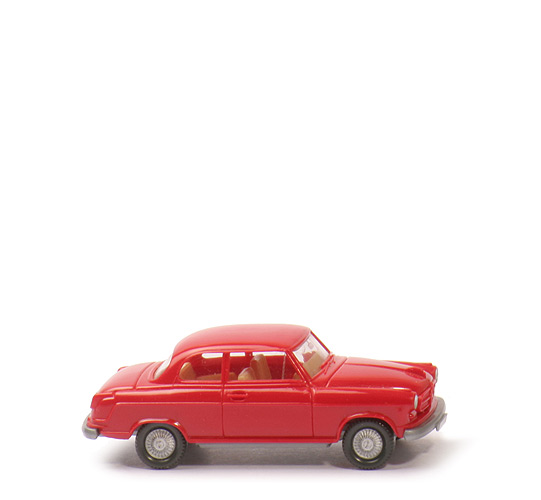Farbe | orangerot | Grill | integriert | Bedruckung vorne | Scheinwerfer silbern | Verglasung | klar | Inneneinrichtung | ca. hellbeige | Lenkrad | integriert | Chassisfarbe | silbern | Bodenprägung | Borgward Isabella, WIKING, Berlin-W | Bedruckung Heck | ohne | Räder Typ | Riffelkappe | Felgen | gesilbert |