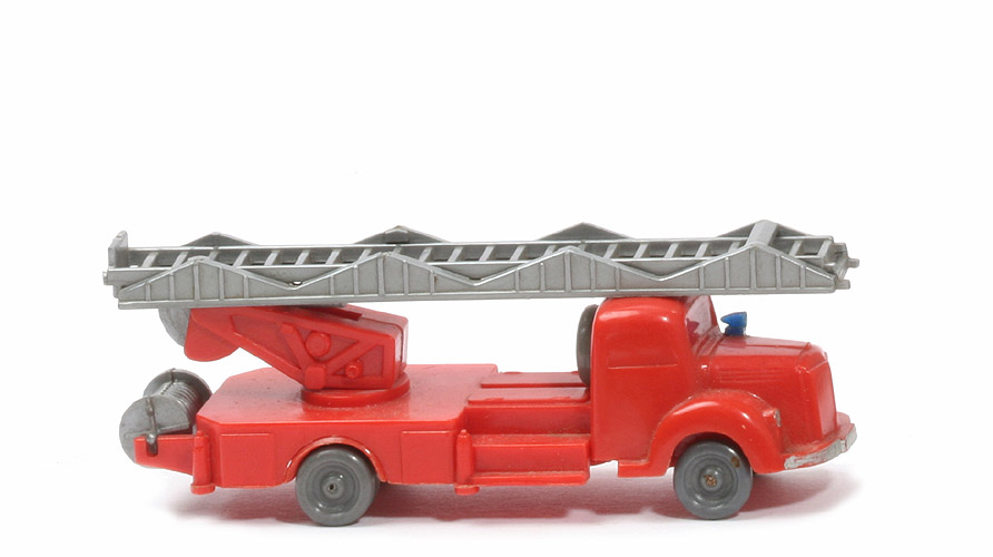 | Achsen | Rollachser | | Farbe Kabine u. Chassis | orangerot | | Kabinenboden | offen | | Bodenprägung | ohne | | Grill | glatt | | Dach | glatt ohne Blaulichtleiste | | Blaulicht | auf Motorhaube | | Bemalung | Scheinwerfer, Stoßstange silbern | | Reserverad | hinter Kabine | | Achshalterungen | geschlossen | | Aufbau Farbe | orangerot | | Aufbau Variante | Trittfläche glatt | | Führungsstege für Chassis | einer mittig | | Drehschemel | Version 1, orangerot | | Leiter | geschwungen, zweiteilig, silbern | | Schlauchhaspel Typ | 1. Version | | Schlauchhaspel Farbe | silber | | Räder | 10mm, ohne Profil - hier anthrazit |