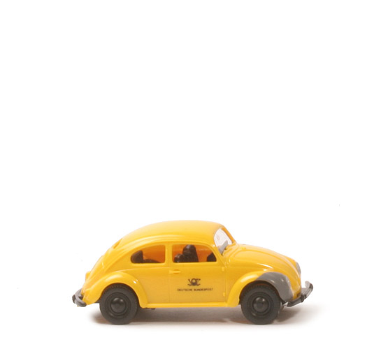 Farbe | gelb | Blinker | ohne | Kennzeichenleuchte | schmal | Frontscheibe | gerade | Rückfenster | geteilt ("Brezel") | Lüfter hinter Rückfenster | ohne | Verglasung | klar | Inneneinrichtung | schwarz | Lenkrad | integriert | Bemalung Scheinwerfer | silber | Bemalung Rückleuchten | rot | Bemalung Kennzeichen hinten | ohne | Chassisfarbe | schwarz | Chassis Typ | Version 11 | Bodenprägung | neues Wiking-Logo, Germany | Stoßstange | mit Hörnern | Räder | 8 mm, 2-teilig | Radkappen | VW-Zeichen, schwarz | Beschriftung | Posthorn, "Deutsche Bundespost" |