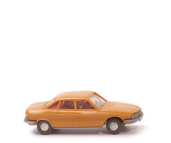 | Farbe Karosserie | dunkles senfgelb | | Grill | Teil des Chassis | | Verglasung | klar | | Inneneinrichtung | ca. weinrot | | Lenkrad | separat eingesetzt, hellgelbgrau | | Chassis | silbern | | Bodenprägung | WIKING Germany NSU Ro 80 | | Bemalung | völlig ohne | | Räder | Standard-Riffelkappe | | Bemalung Radkappen | silbern |