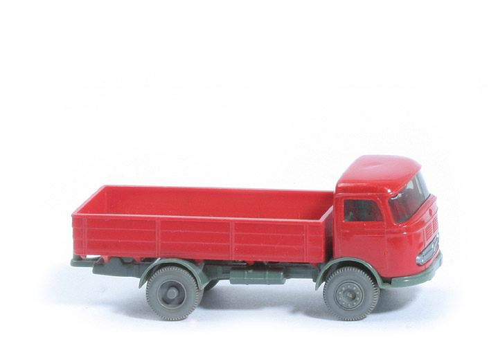 Farbe Kabine | rot | Verglasung | getönt | Grill | silbern eingesetzt | Verglasung | getönt | Blinker | ohne | Inneneinrichtung | mit (!), dunkelresedagrün | Bemalung | ohne | Chassis Art | Typ 1 | hinterer Kardanbereich | offen | seitlicher Kardanbereich | offen | Bodenprägung | nur WM | Pritschenabstützung | punktuell | Chassis Farbe | dunkelresedagrün | Kardaneinsatz Farbe | dunkelresedagrün | Rücklichtstange | ohne | Pritsche Art | Normpritsche | Pritschenseiten | waagerechte Gravuren | Rückleuchten | eingerückt | Kennzeichen | zweiteilig | Pritsche Farbe | rot | Pritscheneinlage | beige | Räder | 10 Loch |