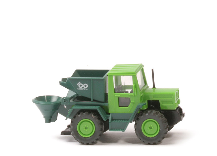 Aufbau | gelbgrün | Verglasung | klar | Inneneinrichtung | schwarz | Lenkrad | integriert | Auspuffrohr | schwarz | Kotflügel | patinagrün | Chassis | schwarz | Bodenprägung | WIKING, Germany | Zughaken | groß | Räder | 15 mm, grobstollig | Felgen | gelbgrün, 6-Loch | Düngeaufsatz | mit | Mulde | patinagrün | Muldenunterbau | patinagrün | Streutrichter | patinagrün | Beschriftung Mulde | "100, 100 Jahre Automobil, Daimler Benz 1886 - 1986" |