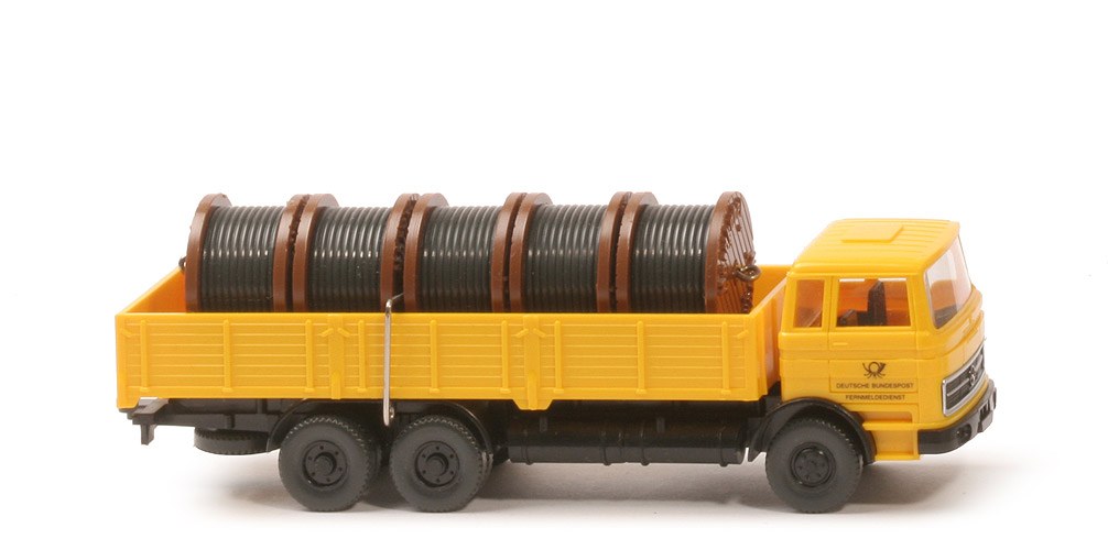 | Fahrzeug | Kabine oben | gelb | Kabine unten | gelb | Streifen | ohne | Verglasung | klar | Inneneinrichtung | schwarz | Lenkrad | mit | Grill | schwarz, Grillumrandung, Stern, Zierlinie silbern | Stoßstange, Radlauf vorn | schwarz | Chassisfarbe | schwarz | Radlauf hinten | 2-teilig schwarz | Reserverad | unter Chassis gesteckt | Pritsche | gelb | Pritscheneinlage | silbern | Räder | 12mm, Felgen eingesetzt | Felgen | schwarz, 6-Loch | | Kabel | Halterung | Metallklammer | Prägung | Nordkabel | Kabelrolle | braun | Kabel | schwarz |