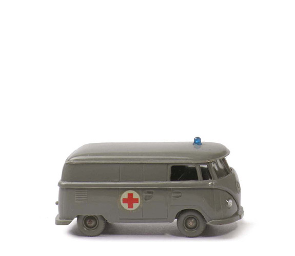 Farbe Karosserie oben | betongrau | Farbe Karosserie unten | betongrau | Heckscheibe | klein | Chassis | Teil des Karosserieunterteils | Chassis Version | Typ A Nest 2 | Bodenprägung | Made in Germany, WM | Rückleuchten | gering erhaben | Mittelholm | oben gerade | Verglasung | Typ 3, getönt, eine Bohrung | Inneneinrichtung | ohne | Dachaufbau | ohne | Blaulicht | auf dem Dach verklebt | Rotes Kreuz | als Abziehbild | Bemalung Scheinwerfer | silbern | Bemalung VW-Emblem | ohne | Bemalung Stoßstangen | ohne | Bemalung Kennzeichen hinten | ohne | Bemalung Rückleuchten | rot | Räder | 8 mm, ca. lichtgrau, Nabe gewölbt |