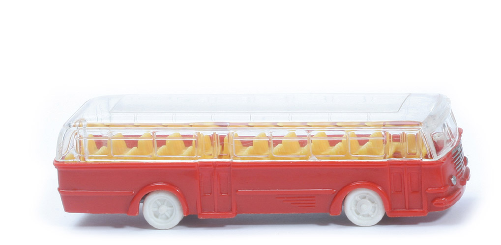 | | Karosserie | | Typ Karosserie | Typ 1 | | Farbe | blassrot | | Scheinwerfer | konvex | | Grill | alt | | unterer Türabschluss | tiefer als Karosserie | | angedeutete Fenster in Türen | gerundet | | Heck | Version 2 | | Heckbeschriftung BÜSSING | dünn, die beiden "S" größer als Restschrift | | Rückleuchten | ohne | | Nummernschild hinten | ohne | | Bodenprägung | ohne | | Chassishalterungen | eckig | | | Dach | | Typ Dach | glatt, ohne Lüfter | | Fenster | gerundet | | | Inneneinrichtung | | Typ Inneneinrichtung | Sitze grob | | Farbe | gelb | | Lenkrad | an Karosserie | | Lenkrad Farbe | weiß | | Fahrer | ohne | | | Chassis | | Bodengruppe | Typ 1 | | Chassis Farbe | mattes silber | | | Räder | | Typ | Trilex | | Farbe | weiß |
