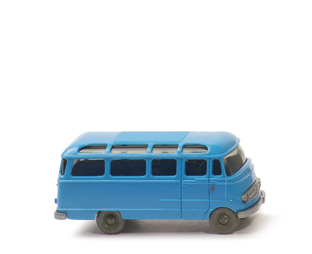 | Farbe | himmelblau | | Rückleuchten | stark erhaben | | Grill | silbern eingesetzt | | Verglasung | getönt | | Inneneinrichtung | ohne | | Chassisfarbe | silbern | | Bodenprägung | WM | | Bemalung Scheinwerfer | ohne | | Bemalung Blinker seitlich | rot | | Bemalung Rückleuchten | rot | | Bemalung Kennzeichen hinten | ohne | | Räder Typ | 8 mm, Nabe gewölbt | | Räder Farbe | ca. basaltgrau |