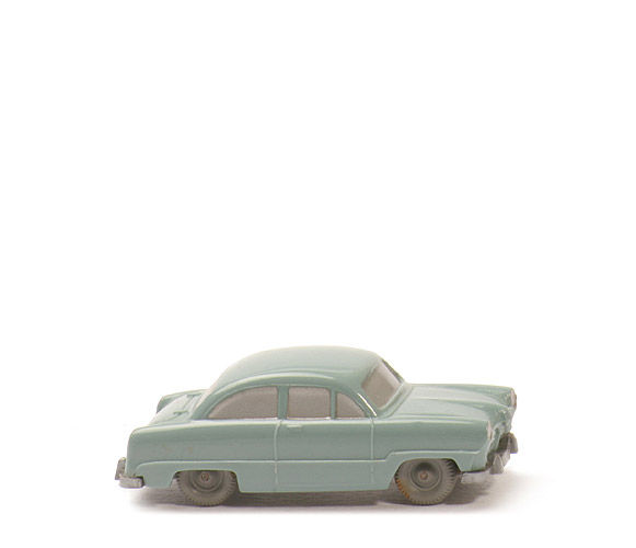 Achsen | Rollachser | Farbe Karosserie | grünblau | Silberung Scheiben | mit | Bemalung Scheinwerfer | silber | Bemalung Rückleuchten | rot | Chassis | silbern | Bodenprägung | WM im Kreis | Räder Art | 7mm, mit Profil | Räder Farbe | ca. platingrau |