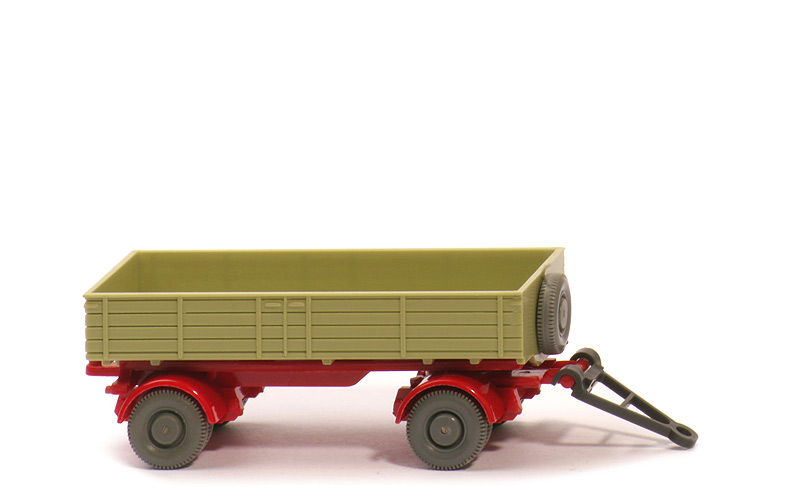 | Pritsche Farbe | lindgrün | | Chassis Farbe | rot | | Chassis Typ | 3-fach durch Pritschenstege durchbrochen | | Chassis Bodenprägung | Made in Germany, WM, 40 g | | Zughaken | integriert | | Drehschemel | rot | | Radlauf vorne | Typ 2, rot | | Radlauf hinten | Typ 2, rot | | Reserverad | an der Pritschen-Vorderseite | | Deichsel | angesteckt, Kunststoff | | Nummernschild | an der Pritsche | | Bemalung Nummernschild | ohne | | Bemalung Rückleuchte | ohne | | Räder | 11 mm Glattwand, staubgrau |