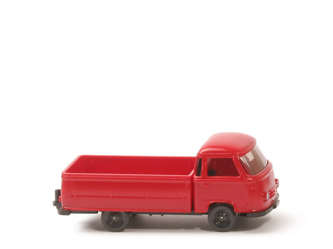 | Kabine | rot | | Verglasung | klar | | Inneneinrichtung | ohne | | Bedruckung Scheinwerfer | Scheinwerfer silbern | | Chassis | schwarz | | Bodenprägung | WIKING, Germany, WM | | Zughaken | integriert | | Pritsche | rot | | Bedruckung Rückleuchten | ohne | | Plane | ohne | | Räder | 8 mm, Nabe gewölbt | | Räder Farbe | anthrazit |