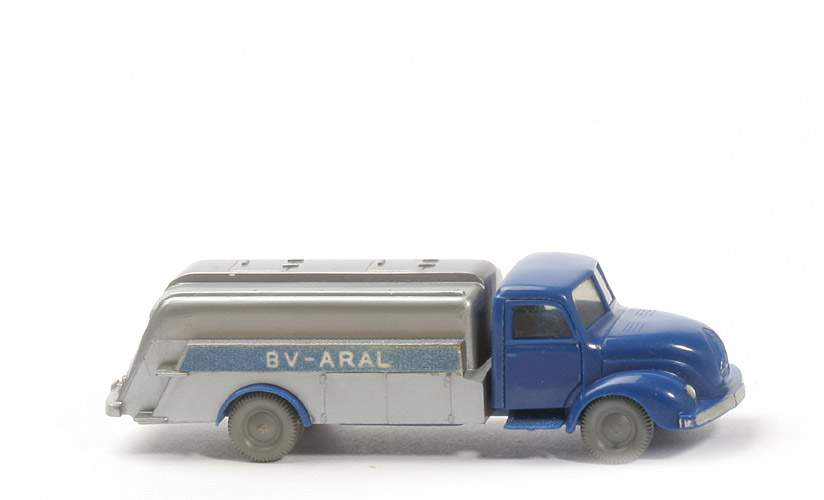 Farbe Kabine | enzianblau | Version Kabine | Typ 3 | Stoßstange | abgeschrägt | Kabinenboden | mit Schlitz | Verglasung | getönt | Bemalung | Scheinwerfer, Stoßstange | Version Chassis | Version 2 | Achshalterungen | geschlossen | Chassis Farbe | enzianblau | Chassis Bodenprägung | WM (ohne Kreis) | Chassisplatte Farbe | silber | Chassisplatte Prägung | WM und Wiking | Chassisplatte Grösse | Typ 3 (Fläche 10 x 15mm) | Tank | silber | Beschriftung | BV - ARAL... (s. Foto) | Beschriftung Seite | Papieraufkleber | Beschriftung Heck | Papieraufkleber | Bemalung Rückleuchten | rot | Räder | 10mm, ältere Ausführung |