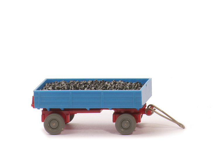 | Pritsche | Pritsche Farbe | himmelblau | Pritschenseiten | mit Struktur | Pritscheneinlage | ohne | Kennzeichen hinten | zweiteilig | | Chassis | Chassis Variante | Typ 4 | Chassis Farbe | rot | Achshalterungen | offen | Drehschemel | eingesteckt | Bodenprägung Drehschemel | ohne | Bodenprägung Chassis | Germany | Zughaken | ins Chassis integriert | | weitere Details | Deichsel | Metall | Kohlenladung | mit | Bemalung Rückleuchten | ohne | Bemalung Kennzeichen | ohne | Räder | 10 mm, staubgrau, neuere Ausführung |