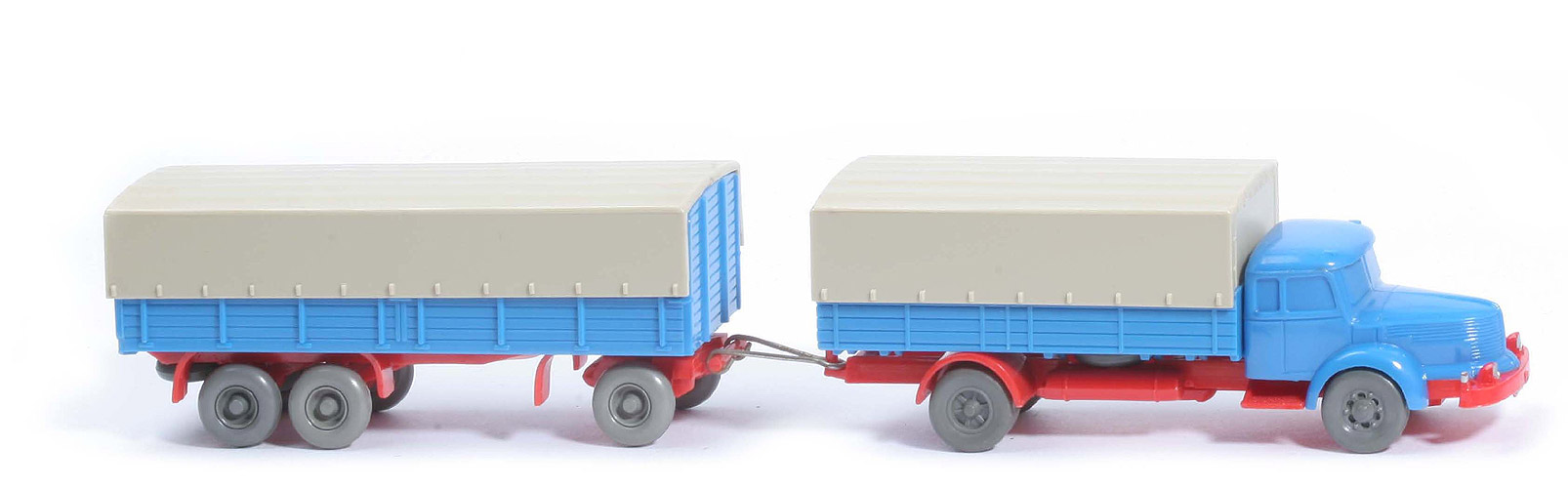 Achsen | Rollachser | Kabine Farbe | himmelblau | Blinker | ohne | Bemalung Scheinwerfer | silbern | Bemalung Peilstangen | Spitze silbern | Bemalung Kennzeichen | silbern | Chassis Farbe | blassrot | Chassis Typ | 1d | Typ Peilstangen | 2,4 mm lang | Achshalterungen | geschlossen | Bodenprägung | WM im Kreis | Markierungspunkt unter Motor | mit | Trittbretter unten | glatt | vor Verteilergetriebe | offen | Aufpuffrohr mittig | unsauber graviert | Reserveradhalterung | ohne Stifte | hinter Hinterachskardan | offen | Quertraverse hinten | ohne | Reserverad | mittig unter Pritsche | Farbe Pritsche | himmelblau | Bemalung Kennzeichen | silbern | Bemalung der einen Rückleuchte | rot | Plane | hinten offen | Farbe Plane | hellelfenbein | Räder | Trilex ohne Profil |