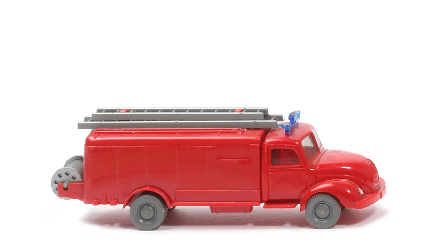 Farbe Kabine | rot | Version Kabine | Typ 4 | Stoßstange | gerade | Kabinenboden | mit Schlitz | Blinker | ohne | Verglasung | getönt | Dach | glatt, Blaulichtleiste mit Klebelasche | Bemalung | nur Scheinwerfer | Chassis Farbe | rot | Chassis Art | Version 3b | Achshalterungen | offen | Chassis Bodenprägung | WM (ohne Kreis) und Made in .. | Zughaken und Rückleuchten | entfernt | Aufbau Farbe | rot | Aufbau Variante | Vorderwand stark | Leitern | silbern | Schlauchhaspeln Typ | alt | Schlauchhaspeln Seiten | silbern | Schlauch | basaltgrau | Räder | 10 mm, neuere Version |
