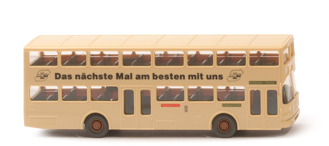 Farbe Aufbau | hellbeige | Farbe Inneneinrichtung | patinagrün | Fahrer | ca. basaltgrau | Lenkrad | anthrazit | Farbe Chassis | anthrazit | Bodenprägung | 730, WIKING BERLIN-W | Beschriftung Art | Druck | Beschriftung | BVG, Das nächste Mal .. ... siehe Foto | Schrift über Tür vorn | dunkles maigrün, Negativdruck | Schrift hinter Vordertür | dunkles maigrün, Negativdruck | Schrift vor hinterer Tür | rot, Negativdruck | BVG-Emblem | beidseits | Zielangaben | ohne | sonstige Bemalung | völlig ohne | Räder | 12 mm | Radkappen | lehmbraun |