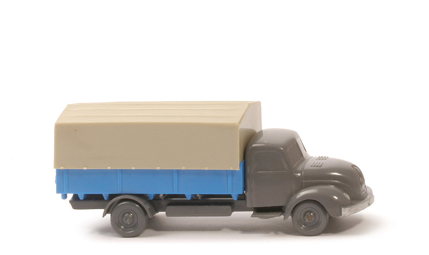 | Achsen | Rollachser | | Version Kabine | Typ 1a | | Kabine unten | mit Bohrungen | | Farbe Kabine u. Chassis | basaltgrau | | Verstärkung Trittbretter | mit | | Bemalung Kabine | Scheinwerfer, Stoßstange | | Chassis Farbe | basaltgrau | | Version Chassis | Version 1b | | Bodenprägung | WM im Kreis | | Pritsche | Seiten glatt | | Farbe Pritsche | himmelblau | | Zughaken | nach unten | | Zapfen | Flachzapfen | | Kennzeichen | bemalt silbern | | Befestigung Pritsche | geklebt | | Räder | 10 mm, ohne Profil, dunkelbasaltgrau |