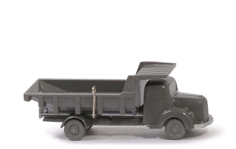 Achsen | Rollachser | Farbe Kabine u. Chassis | basaltgrau | Kabinenboden | silberne Platte | Bodenplatte Prägung | WM im Kreis | Typ Chassis | mit Kipperschlitz | Mulde Farbe | basaltgrau | Mulde Typ | mit Struktur | Kippmechanimus | Hebel einteilig | Kippscharnier | breit, silbern | silberne Halteplatte auf CH | lang | Kipphebel | (immer) Beifahrerseite | Bemalung Scheinwerfer | silber | Bemalung Kennzeichen vorne | silber | Bemalung Stoßstange | silber | Räder | 10mm, neuere Ausführung staubgrau |