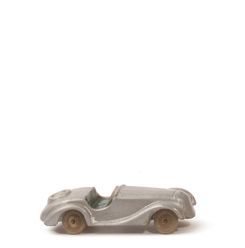 Achsen | Drahtachser | Farbe Karosserie | silbern | Kühlergrill | glatt | Lenkrad | separat eingeklebt | Farbe Lenkrad | glasiges grau | Sitze | Lack dunkelgrün | Sitzfläche | glatt | Bodenprägung | WM (ohne Kreis), Made in Germany | Bemalung Scheinwerfer | ohne | Bemalung Kennzeichen hinten | rudimentär weiß | Räder Typ | Nabe flach | Räder Farbe | glasig |