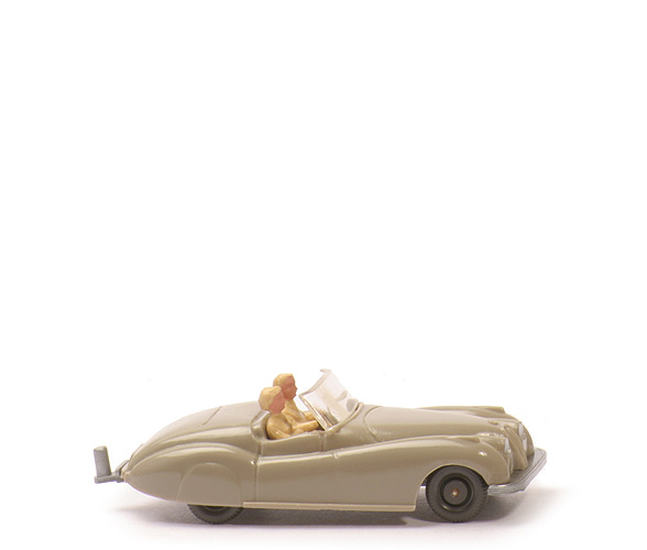 | Windschutzscheibe | gerundet, Spritzteil | | Farbe Karosserie | olivgrau | | Grill | 4 Streben (Grill grob) | | Trittbretter | mit | | hintere Stoßstange | Teil der Karosserie | | Lenkrad | separat eingesetzt, 3-speichig | | Figuren Farbe | ca. hellbeige | | Bemalung Figuren | Gesichter | | Chassisfarbe | silbern | | Achshalterung | offen | | Bodenprägung | Jaguar-Sport, WIKING Germany, 2 | | Schlepploch | ohne | | Zughaken | angeklebt, silbern, rechteckig | | Bemalung vorn | Scheinwerfer silbern | | Bemalung hinten | ohne | | Räder Farbe | anthrazit | | Räder Typ | Profil, 8 mm |