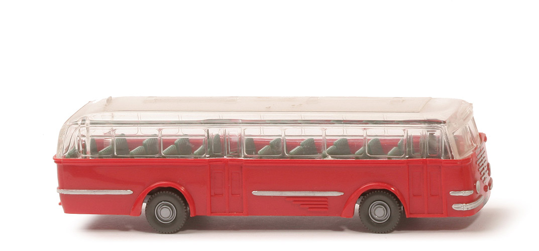 | Karosserie | Typ Karosserie | Typ 2 | Farbe | rot | Scheinwerfer | konkav | Grill | neu | unterer Türabschluss | bündig mit Karosserie | angedeutete Fenster in Türen | eckig | Heck | Version 6 | Heckbeschriftung BÜSSING | ohne | Rückleuchten | mit, 2-stufig | Nummernschild hinten | mit | Bodenprägung | 72, Wiking Germany | Chassishalterungen | ohne | | Dach | Typ Dach | mattiert, 4 Lüfter | Fenster | gerundet | | Inneneinrichtung | Typ Inneneinrichtung | Sitze fein | Farbe | patinagrün | Lenkrad | an Inneneinrichtung | Lenkrad Farbe | ca. basaltgrau | Fahrer | mit Beinen, ca. basaltgrau | | Chassis | Bodengruppe | Typ 7 | Chassis Farbe | anthrazit | | Räder | Typ | 12mm, Profil grob | Radkappen | silbern |