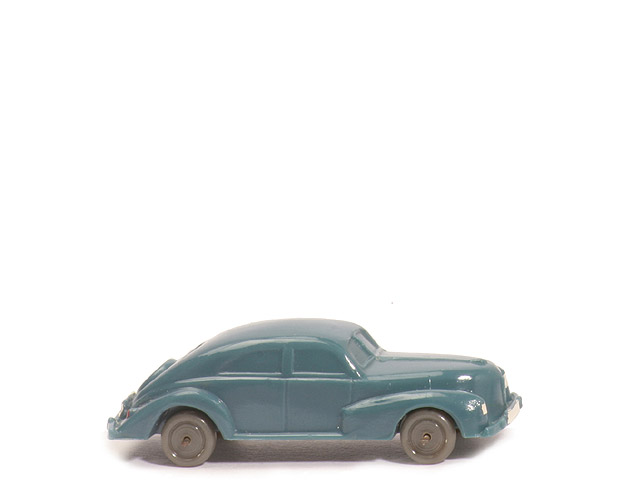| Achsen | Drahtachser | | Typ | Haube gerundet ("spitz") | | Farbe Karosserie | mattgraublau | | Frontscheibe | geteilt | | Kühlergrill | ein senkrechter Steg | | hintere Stoßstange | durchgehend | | Zughaken | ohne | | Bodenprägung | WM Germany | | Bemalung Scheinwerfer | weiß | | Bemalung Kennzeichen vorne | weiß | | Bemalung Stoßstange vorne | ohne | | Bemalung Rückleuchten | rot | | Bemalung Kennzeichen hinten | weiß | | Bemalung Stoßstange hinten | ohne | | Räder Typ | Nabe flach | | Räder Farbe | staubgrau |
