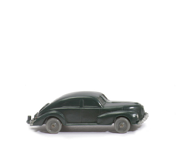 | Achsen | Drahtachser | | Typ | Haube gerundet ("spitz") | | Farbe Karosserie | schwarzgrün | | Frontscheibe | geteilt | | Kühlergrill | ein senkrechter Steg | | hintere Stoßstange | geteilt, integrierter Zughaken | | Zughaken | Zughaken integriert | | Bodenprägung | WM Germany | | Bemalung Scheinwerfer | silbern | | Bemalung Kennzeichen vorne | silbern | | Bemalung Stoßstange vorne | silbern | | Bemalung Rückleuchten | rot | | Bemalung Kennzeichen hinten | ohne | | Bemalung Stoßstange hinten | silbern | | Räder Typ | Nabe gewölbt | | Räder Farbe | staubgrau |