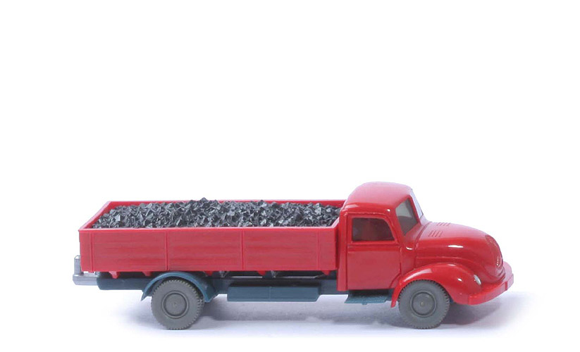 Farbe Kabine | rot, | Version Kabine | Typ 3a | Stoßstange | abgeschrägt | Kabinenboden | ohne Schlitz | Blinker | ohne | Verglasung | getönt | Bemalung | nur Scheinwerfer | Chassis Farbe | mattgraublau | Version Chassis | Version 2 | Achshalterungen | geschlossen | Chassis Bodenprägung | WM (ohne Kreis) | Zughaken | silbern, im Kipperschlitz | Rückleuchten am Chassis | ohne | Pritsche Art | Normpritsche | Pritschenseiten | waagerechte Gravuren | Rückleuchten | hinter Rückwand verspringend | Kennzeichen | zweiteilig | Pritsche Farbe | rot, | Pritscheneinlage | silbern | Bemalung Rückleuchten | mit | Bemalung Kennzeichen | ohne | Räder | 10mm, neuere Ausführung |