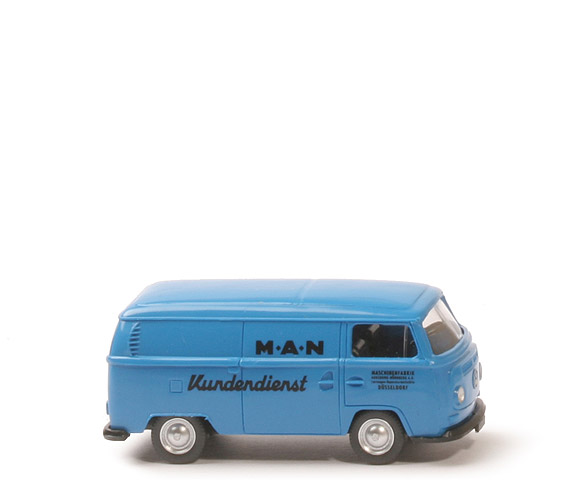 Karosserie | himmelblau | Türgriffe | erhaben | Türdruck | siehe Kommentar | Verglasung | klar | Lenkrad | separiert | Inneneinrichtung | anthrazit | Bemalung VW-Emblem | silbern | Bemalung Scheinwerfer | silbern | Bemalung Rückleuchten | rot | Beschriftung | "MAN Kundendienst" | Beschriftung Art | Druck schwarz | Chassisfarbe | schwarz | Bodenprägung | neues WIKING-Logo, Germany | Räder Typ | 8 mm, Nabe rot, eingesetzt |