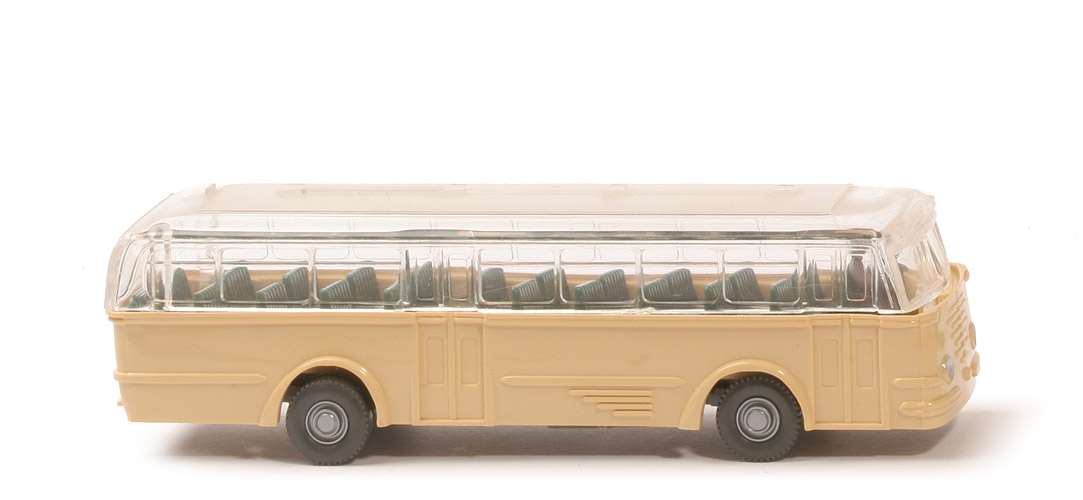 | | Karosserie | | Typ Karosserie | Typ 2 | | Farbe | hellbeige | | Scheinwerfer | konkav | | Grill | neu | | unterer Türabschluss | bündig mit Karosserie | | angedeutete Fenster in Türen | eckig | | Heck | Version 6 | | Heckbeschriftung BÜSSING | ohne | | Rückleuchten | mit, 2-stufig | | Nummernschild hinten | mit | | Bodenprägung | 72, Wiking Germany | | Chassishalterungen | ohne | | | Dach | | Typ Dach | mattiert, 4 Lüfter | | Fenster | gerundet | | | Inneneinrichtung | | Typ Inneneinrichtung | Sitze fein | | Farbe | kieferngrün | | Lenkrad | an Inneneinrichtung | | Lenkrad Farbe | anthrazit | | Fahrer | mit, ca. basaltgrau | | | Chassis | | Bodengruppe | Typ 7 | | Chassis Farbe | basaltgrau | | | Räder | | Typ | 12mm, Profil grob | | Radkappen | silbern |