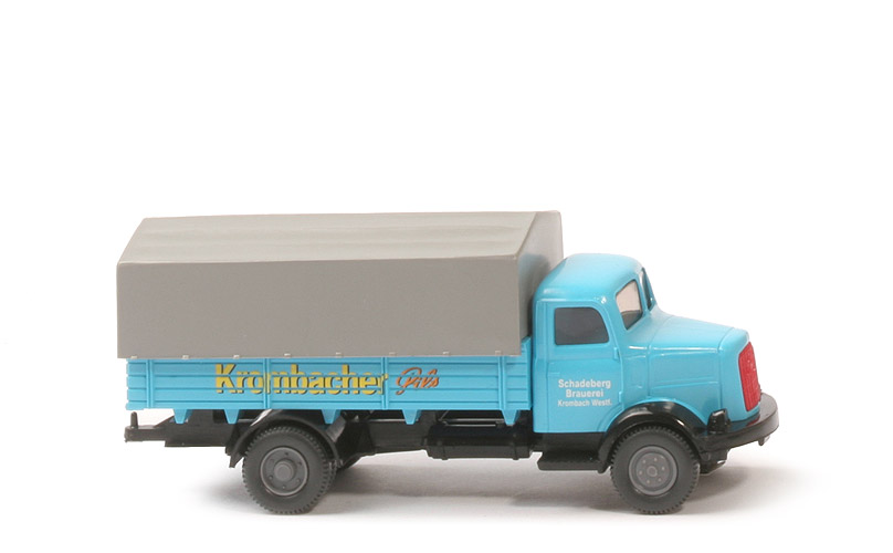 Farbe Kabine | adriablau | Verglasung | klar | Grill | rot eingesetzt | Bedruckung Front | ohne | Bedruckung Türen | Schadeberg, Brauerei, Krombach Westf. | Chassis Art | ähnlich 3. Version: geschl., m. GERMANY | Blinker | mit | Chassis Bodenprägung | neues WIKING-Logo, Germany | Chassis Farbe | schwarz | Zughaken | Mikro-Zughaken | Pritsche Art | neue Pritsche mit geraden Seiten | Pritschenseiten | waagerechte Gravuren | Rückleuchten | unter der Pritsche herausragend | Pritsche Farbe | adriablau | Pritscheneinlage | ohne | Bedruckung Pritsche | Krombacher Pils | Bedruckung Rückleuchten | ohne | Bedruckung Kennzeichen | ohne | Plane | ca. platingrau | Plane Druck | ohne | Räder | 11mm 6 Loch | Felgen | ca. staubgrau |