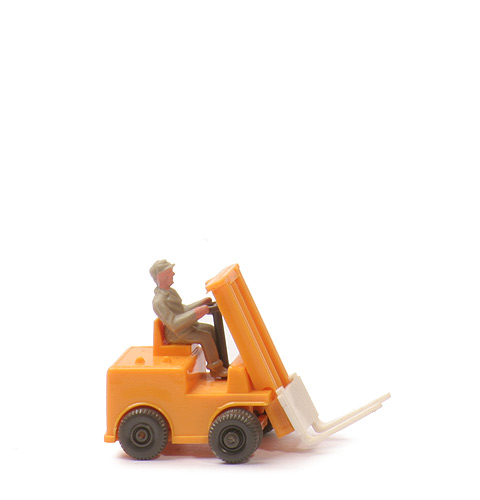 | Farbe Aufbau | gedecktes melonengelb | | Fußbodenfläche | mit Struktur | | Bohrlöcher als Dachaufnahme | ohne | | Lenkrad | anthrazit, 3-speichig | | eingesetztes Chassis | gedecktes melonengelb | | hier Bodenprägung | 117, WM, Germany | | Hubgestell | gedecktes melonengelb | | Hubarme | weiß | | Fahrer | ca. platingrau | | Bemalung Fahrer | Gesicht und Hände | | Räder Farbe | anthrazit | | Räder vorne | 7 mm, Doppelbereifung | | Räder hinten | 7 mm, Einfachbereifung |
