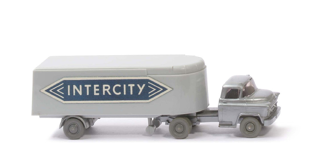| | Zugmaschine | | Farbe Kabine | silbern | | Farbe Chassis | silbern | | Sattelpfanne | alt, mit Steg, für kleinen KöBo | | Zughaken | mit | | Bodenprägung | Wiking Germany | | | Auflieger | | Farbe Oberteil | silbergrau | | Farbe Unterteil | silbergrau | | Radlauf | mit Kotflügel silber | | Bodenprägung | WM (ohne Kreis) | | Rückleuchten | mit | | Dach | mattiert |