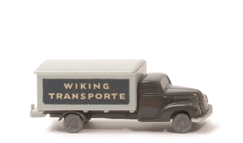 Achsen | Rollachser | Farbe Kabine u. Chassis | anthrazit | Kabinenboden | offen | Innenprägung | WM im Kreis | Bemalung Kabine | Scheinwerfer, Stoßstange | Koffer Farbe | silbergrau | Koffer Unterteil Farbe | silbergrau | Türen | silbergrau | Koffer Typ | Version 1a | Zughaken | im Kofferunterteil integriert | Beschriftung | Wiking Transporte (s. Foto) | Beschriftung Farben | stahlblau mit weißer Schrift | Beschriftung Art | Papieraufkleber | Räder | 10mm, ohne Profil, basaltgrau |