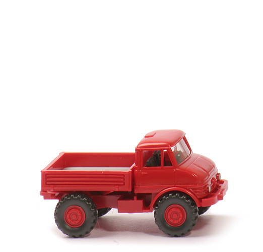 Farbe Kabine | rot | Verglasung | klar | Inneneinrichtung | schwarz, Sitze Struktur | Lenkrad | eingesetzt, schwarz | Chassis Farbe | rot | Bodenprägung | 370, Wiking, Germany | Kardanelement Farbe | rot | Reserverad | über Chassis | Pritsche | rot | Pritscheneinlage Typ | 6 Längsstreifen und trapezförmige Gravur | Pritscheneinlage Farbe | silbern | Bemalung | nur Scheinwerfer | Räder | 12 mm, grobstollig, separate Felgen | Felgen | 8-Loch, rot |