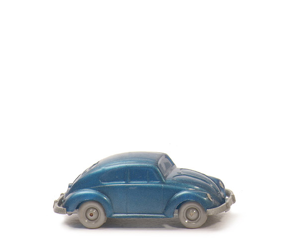 Achsen | Rollachser | Farbe Karosserie | dunkles blaumetallic | Heckscheibe | einteilig oval | Bemalung Scheinwerfer | silber | Bemalung Rückleuchten | rot | Chassis Farbe | silbern | Chassis Typ | Typ 1 | Bodenprägung | WM | Räder Art | ohne Profil, wulstige Radkappe | Räder Farbe | ca. platingrau |