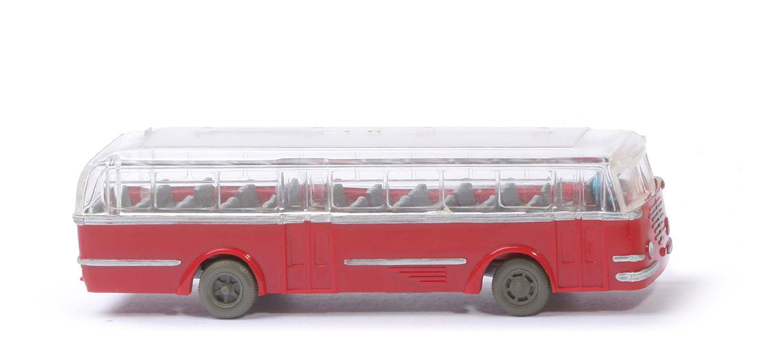 | | Karosserie | | Typ Karosserie | Typ 2 | | Farbe | rot | | Scheinwerfer | konkav | | Grill | neu | | unterer Türabschluss | bündig mit Karosserie | | angedeutete Fenster in Türen | eckig | | Heck | Version 6 | | Heckbeschriftung BÜSSING | ohne | | Rückleuchten | letzte Version - eins stark erhaben | | Nummernschild hinten | mit | | Bodenprägung | WM im Kreis, klein | | Chassishalterungen | ohne | | | Dach | | Typ Dach | mattiert, 4 Lüfter | | Fenster | gerundet | | | Inneneinrichtung | | Typ Inneneinrichtung | Sitze fein | | Farbe | silbern | | Lenkrad | an Inneneinrichtung | | Lenkrad Farbe | ca. basaltgrau | | Fahrer | versehrt, ca. himmelblau | | | Chassis | | Bodengruppe | Typ 3 | | Chassis Farbe | silber | | | Räder | | Typ | Trilex Profil | | Farbe | ca. staubgrau |