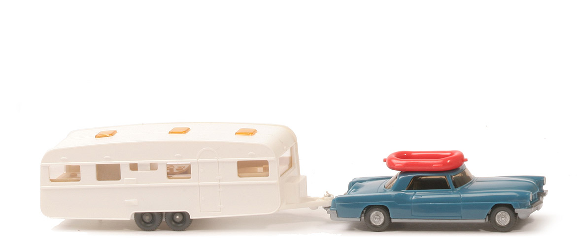 | Farbe | azurblau | | Karosserie-Typ | Form 1 | | Verglasung | stark getönt | | Befestigung der Verglasung | geklebt | | Inneneinrichtung | (immer) ohne | | Chassisfarbe | silbern | | Chassis Typ | Version 3 | | Bodenprägung | WM 21 GERMANY | | Befestigung kl. Chassisplatte | große Pass-Stifte | | Stützen für Verglasung | ohne | | Zughaken | mit | | Chassis Form-Nummer | 2 | | Bemalung Scheinwerfer | silber | | Bemalung Grill | ohne | | Bemalung Rückleuchten | ohne | | Räder Art | Standard-Riffelkappe | | Räder Farbe | anthrazit, gesilbert | | | Wohnwagen | | Corpus Farbe | weiß | | Dach Farbe | weiß | | Verglasung | klar | | Oberlichter | transparent hellgelb | | Inneneinrichtung | hellbeige | | Bedruckung | ohne | | | Boot | | Farbe | orangerot |
