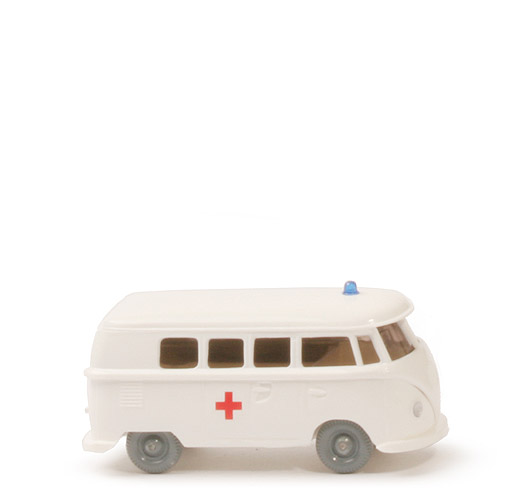 Farbe Karosserie oben | weiß | Farbe Karosserie unten | weiß | Heckscheibe | klein | Chassis | Teil des Karosserieunterteils | Chassis Version | Neuauflage, Typ D Nest 1 | Bodenprägung | neues WIKING Logo | Rückleuchten | stark erhaben | Mittelholm | oben geschwungen | Verglasung | Typ 3, getönt, eine Bohrung | Inneneinrichtung | ohne | Dachaufbau | ohne | Blaulicht | auf dem Dach verklebt | Rotes Kreuz | Druck Rotkreuz auf runder weißer Fläche | Bedruckung Scheinwerfer | silbern | Bedruckung VW-Emblem | ohne | Bedruckung Stoßstangen | ohne | Bedruckung Kennzeichen hinten | ohne | Bedruckung Rückleuchten | rot | Räder Typ | 8 mm, Nabe gewölbt | Räder Farbe | ca. staubgrau |