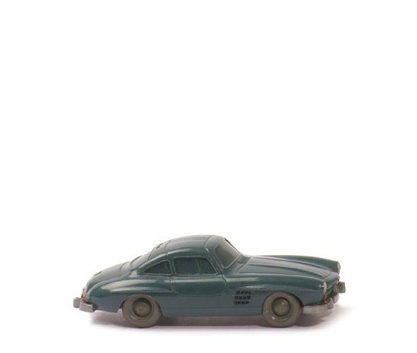 | Räder | Rollachser | | Farbe Karosserie | dunkelgraublau | | Chassisfarbe | silbern | | Bodenprägung | WM im Kreis | | Bemalung Scheinwerfer | silber | | Bemalung Rückleuchten | rot | | Räder Farbe | ca. silbergrau | | Räder Typ | 8 mm, ohne Profil |