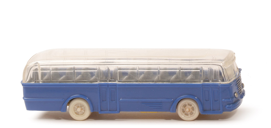 | | Karosserie | | Typ Karosserie | Typ 1 | | Farbe | ultramarin | | Scheinwerfer | konvex | | Grill | alt | | unterer Türabschluss | tiefer als Karosserie | | angedeutete Fenster in Türen | gerundet | | Heck | Version 1 | | Heckbeschriftung BÜSSING | dünn, die beiden "S" so groß wie Restschrift | | Rückleuchten | ohne | | Nummernschild hinten | ohne | | Bodenprägung | ohne | | Chassishalterungen | eckig | | | Dach | | Typ Dach | glatt, ohne Lüfter | | Fenster | gewinkelt | | | Inneneinrichtung | | Typ Inneneinrichtung | Sitze grob | | Farbe | ca. staubgrau | | Lenkrad | an Karosserie | | Lenkrad Farbe | ca. helles cremeweiß | | Fahrer | ohne | | | Chassis | | Bodengruppe | Typ 1 | | Chassis Farbe | hellgelb | | | Räder | | Typ | Trilex | | Farbe | ca. helles cremeweiß |
