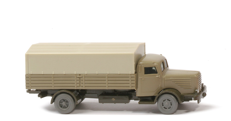 Kabine Farbe und Pritsche | sandbraun | Blinker | ohne | Bemalung Scheinwerfer | silbern | Bemalung Kennzeichen | ohne | Positionsleuchten | mit | Warndreieck | ohne | Pritschenboden | grob strukturiert | Pritschenrückseite | Struktur wie Seite | Chassis | Version 3 | Farbe Chassis | olivgrün | Vorderachshalterung | mit Steggravur | Chassis hinter Hinterachse | geschlossen | Bodenprägung Verteilergetriebe | WM | hintere Achshalterung | offen | Auspuff | zur Beifahrerseite | Zughaken | ca. 4 mm lang, 1,5 mm stark | Rücklichtstange Beifahrerseite | mit | Bodenprägung hinten | ohne | Reserverad | vorne unter Pritsche | Bemalung Kennzeichen | ohne | Rückleuchte | mit, unbemalt | Plane | mit | Plane Farbe | ca. hellgelbgrau | Räder | Trilex mit Profil ca. basaltgrau |