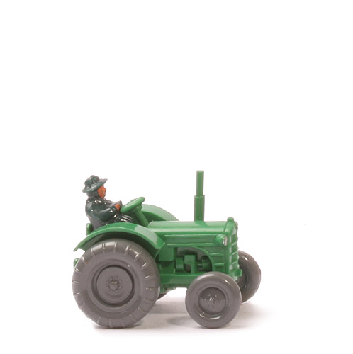 Räder | Rollachser | Aufbau | grün | Bemalung Scheinwerfer | silber | Fahrer | dunkles ozeanblau | Bemalung Fahrer | Gesicht, Hände | Räder vorn | ohne Profil, 6 Loch | Räder hinten | einteilig, 8-Loch | Farbe Räder | dunkles basaltgrau | Zughaken | lang |