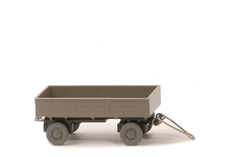 | Pritsche | Pritsche Farbe | betongrau | Pritschenseiten | mit Struktur | Pritscheneinlage | ohne | Kennzeichen hinten | einteilig | | Chassis | Chassis Variante | Typ 2 | Chassis Farbe | schwarz | Achshalterungen | offen | Drehschemel | eingesteckt | Bodenprägung Drehschemel | WM | Bodenprägung Chassis | ohne | Zughaken | silbern, Typ LKW, unter Chassis geklebt | | weitere Details | Deichsel | Kunststoff, anthrazit | Bemalung Rückleuchten | ohne | Bemalung Kennzeichen | ohne | Räder | 11 mm Glattwand, staubgrau |