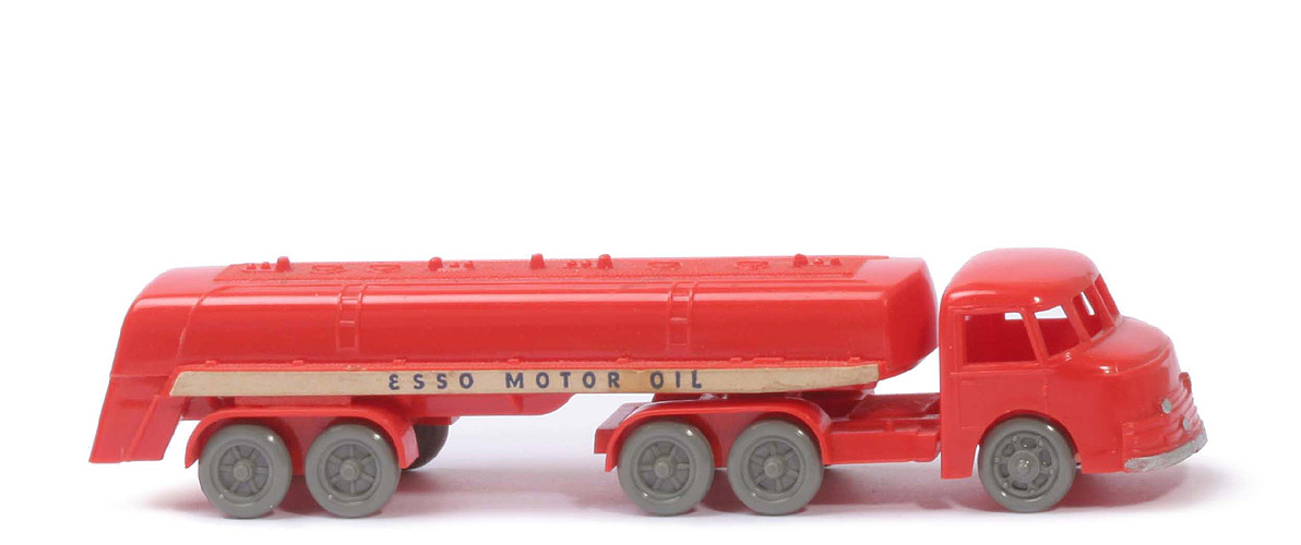 | | Zugmaschine | | Verglasung | ohne | | Kabine Farbe | orangerot | | Chassis Farbe | orangerot | | Kabinenrückwand | ohne Haltenasen | | Bemalung | Scheinwerfer, Stoßstange | | Bodenprägung Chassis | WM im Kreis | | vordere Auswerfermarkierung | 2 mm | | hintere Auswerfermarkierung | 2 Stück | | Achshalterungen | geschlossen | | Sattelpfanne | integriert | | Reserverad | ohne | | Rückleuchten | ohne | | Räder vorn | Version 1a - helles betongrau | | Räder hinten | Version 2a - helles betongrau | | | Auflieger | | Farbe Korpus, Unterteil | orangerot | | Farbe Achseinheit | orangerot | | Königsbolzen | dünn, integriert | | Bodenprägung Unterseite | WM im Kreis | | Bodenprägung Achseinheit | ohne | | Typ Achshalterung | gerade, geschlossen | | Reserverad | ohne | | Rückleuchten | ohne | | Beschriftung Seite | Papieraufkleber | | Länge / Art | 40mm / o. EXTRA | | Beschriftung Heck | Papieraufkleber | | Rand | 1 mm breit | | Bemalung Nummernschild | silber | | Räder | Version 2a - helles betongrau |