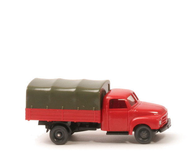 Wiederauflage aus dem Set "Die Wirtschaftswunderjahre bei deutschen Feuerwehren" (2006). Im direkten Vergleich zu den historischen Modellen zeigt sich ein anderer Rot-Ton. Die hier verbaute Pritsche ist eine andere als bei den historischen verglasten Pendants. |