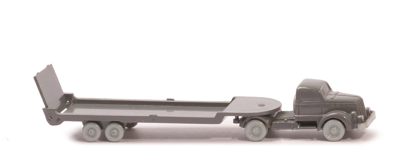 Achsen | Rollachser | | Zugmaschine | Farbe Kabine | basaltgrau | Farbe Chassis | basaltgrau | Bemalung | Scheinwerfer, Kennzeichen silbern | Sattelpfanne | eingesetzt, in Chassisfarbe | Chassis | Version 1b | Achshalterungen | geschlossen | Bodenprägung | WM im Kreis | Reserverad | hinter Kabine | Räder | sog. Porzellanräder | | Auflieger | Achsen | Rollachser | Farbe | basaltgrau | Typ | vorn rund (Typ 1) | Seilwinde | ohne | Fläche über Drehschemel | mit Prägung WM im Kreis | Rückleuchten | ohne | Rampe | kurz | Stützen | ohne | Bodenprägung | ohne | Königsbolzen | kurz | Räder | sog. Porzellanräder |
