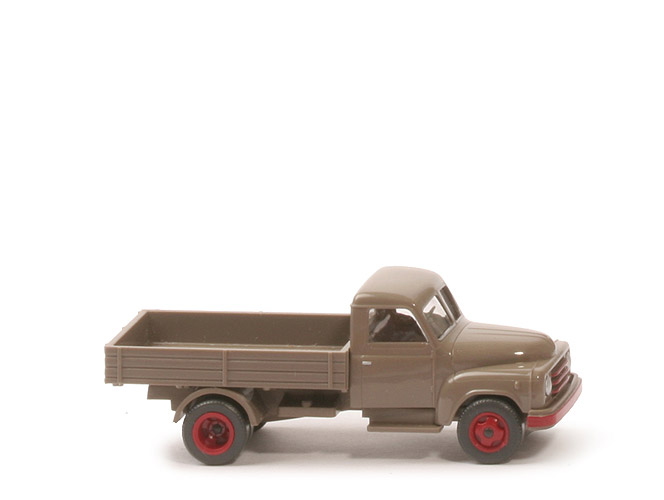 Aus der Serien-Packung "Flink & robust: Die Flotte vom Hanomag-Dienst" aus der Reihe Meilensteine der WIKING-Geschichte. Schön bedruckt: Fensterrahmen der Frontscheibe, Türgriffe silber und mit Hanomag-Schriftzug in silber oberhalb des Kühlergrills. Grillstreben und vordere Stoßstange in weinrot. Die Farbangabe "beigegrau" findet sich nicht in der Farbkarte von Holger Wanner. |