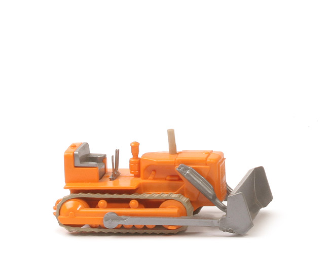 Farbe Aufbau | hellorangegelb | Version | ohne Dach | Motorraumgestaltung links | ohne Abgasanlage | Kühlerdeckel vorn | groß (ca. 1 mm Durchmesser) | Luftfilter | flach und breit | Heck | ohne Quertraversen | Fahrersitz Seite | ohne Quergravuren | kreisrunde Gravuren Heck | mit | Steg vor Steuerhebel | ohne | Kupplung | Befestigung über rechteckige Platte | Kupplungsbolzen | vergossen | Kamin Typ | Gummischlauch auf Dorn an Karosserie | Kamin Farbe | silbern | Räder Typ | Vollmaterial | Räder Farbe | hellorangegelb | Kette | Gummi, ca. platingrau | Sitz Farbe | silbern | Sitz Typ | Sitzfläche glatt | Fahrer | ohne | Steuerhebel Farbe | silbern | Steuerhebel Typ | Steuerknöpfe klein, Basis klein | Räumschild Typ | Typ 2 | hier Oberkante | schmal | hier Hydraulikstempel | integriert | hier seitliche Hydraulik | ohne | Chassis Farbe | silbern | Chassis Typ | Typ 1, ohne Aussparung für Kupplung | Bodenprägung | WM, Wiking |