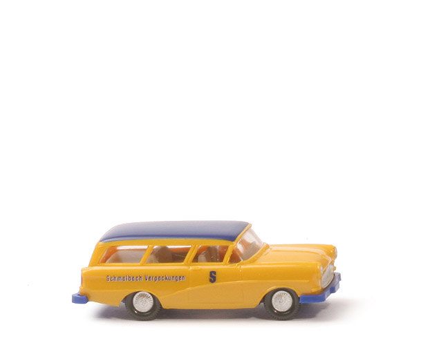 Farbe | ("honig") gelb | Dach | ultramarin lackiert | Beschriftung Türen | Schmalbach-Logo | Beschriftung seitlich | "Schmalbach Verpackungen" | Verglasung | klar | Inneneinrichtung | helles rotelfenbein | Lenkrad | integriert | Bemalung Scheinwerfer | silber | Bemalung Grill | silber | Bemalung Blinker vorne | ohne | Bemalung Rückleuchten | rot | Chassisfarbe | ultramarin | Bodenprägung | neues WIKING-Logo, Germany | Räder | Riffelkappe anthrazit | Felgen | gesilbert |